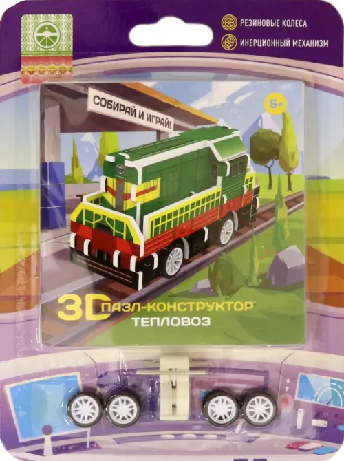 3D пазл инерционный. Тепловоз, 18 деталей