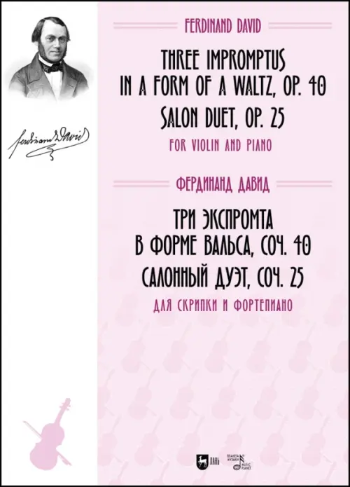 The composer, violinist and educator Ferdinand David (1810–1873) was one of the greatest representatives of the German violin school of the 19th century. Along with his friend and colleague F. Mendelssohn, F. David revived in performing practice a number of forgotten works by composers of the Baroque era. While teaching at the Leipzig Conservatory, he brought up more than one generation of outstanding musicians, including J. Joachim, A. Wilhelmj. David’s composing style was formed under the influence of Mendelssohn, his heritage includes compositions for various instruments and ensembles, among which the works for violin are not the least. The edition includes Three impromptus in a form of a waltz op. 40 and Salon duet op. 25.