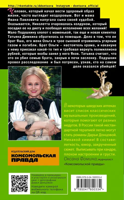 Человек, который начал вести здоровый образ жизни, часто выглядит нездоровым. Вот и мама Ивана Павловича напугала сына своей худобой. Оказывается, Николетта очаровалась колдуном, который посадил ее на диету и пообещал исполнение всех желаний! Мало Подушкину хлопот с маменькой, так еще и новая клиентка Татьяна Димкина обратилась за помощью. Дело в том, что ее брат Яша, его жена Ольга и трое сыновей отравились угарным газом и погибли. Брат Ольги – настоятель храма, и накануне к нему приезжал какой-то тип и требовал вернуть полмиллиона рублей, которые якобы занял у него Яков. Татьяна считает, что это он убил семью брата, закрыв в печи заслонку. Подушкин провел расследование, и был потрясен узнав, кто на самом деле оказался убийцей!