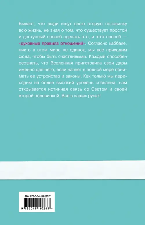 Книги, которые помогут разобраться в себеЕсли вы обнаружили ошибку в описании товара «Духовные правила отношений. Как каббала помогает твоей второй половинке найти тебя» (авторы: Берг Йегуда), то выделите её мышкой и нажмите Ctrl+Enter. Спасибо, что помогаете нам стать лучше!