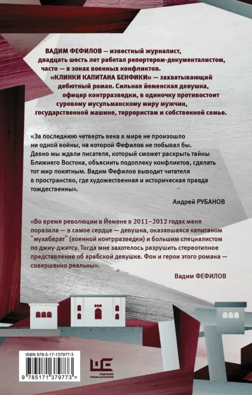 «Клинки капитана Бенфики» — захватывающий дебютный роман. Сильная йеменская девушка, офицер контрразведки, в одиночку противостоит суровому мусульманскому миру мужчин, государственной машине, террористам и собственной семье.