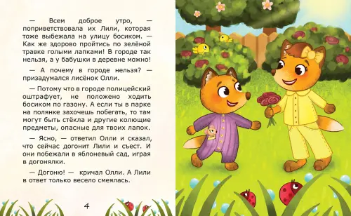 Приключения лисёнка Олли написаны с юмором и детской искренностью. Детям понравится отгадывать весёлые загадки и следить за взаимоотношениями брата и сестры, которые любят похулиганить вместе и умеют поддержать друг друга, если нужно.