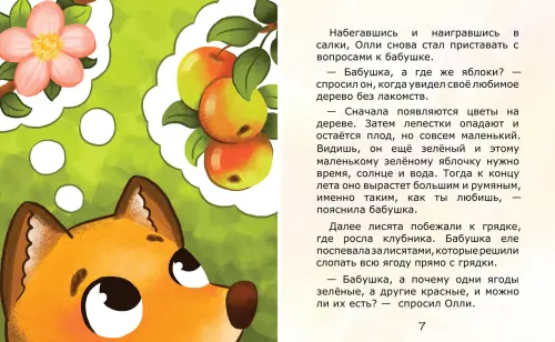 На этот раз лисёнок Олли поведает о том, как здорово гостить у бабушки в деревне, познакомит с домашними животными, овощами и фруктами. Маленькие читатели узнают о том, какие грибы можно собирать в лесу, а какие нет.