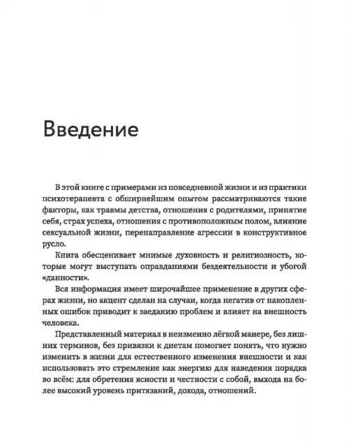 Книга, которую вы держите в руках, в доступной форме освещает психологические причины пренебрежения своей внешностью и нарушений пищевого поведения. Она заставляет посмотреть под другим углом на "случайности" и "обстоятельства", мешающие достижению результата.