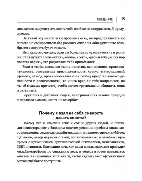 ВНИМАНИЕ! Книга содержит нецензурную лексику и информацию, которая идёт вразрез с модными идеями феминизма, популяризируемым и ставшим привычным мнением об отсутствии различий во взглядах на мир мужчин и женщин; которая может вызвать отторжение у людей, предпочитающих в это верить даже ценой рациональной оценки реальности. Задача резких фраз не шокировать читателя "патриархальным сексизмом", а заставить его снять розовые очки и, наконец, начать делать шаги к красоте и счастью. Слова имеют силу, у резких слов её иногда больше.