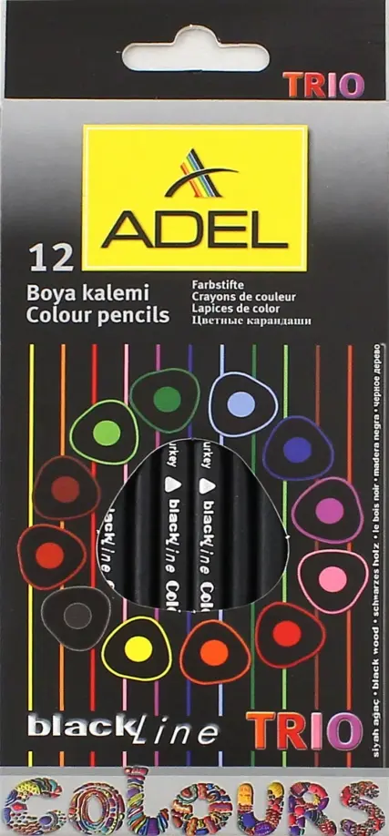 Набор цветных карандашей Adel Blackline TRIO, 12 цветов