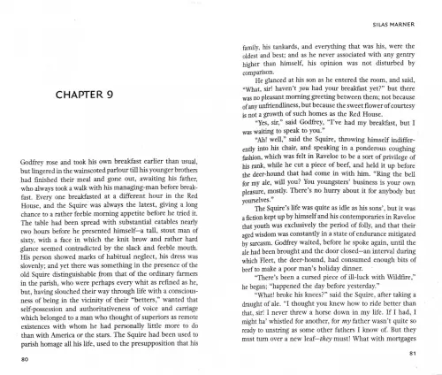 It is only when his money is stolen and a small orphan girl, Eppie appears in his life that Silas's fortunes begin to change and he truly begins to learn what it means to regain his faith in life.