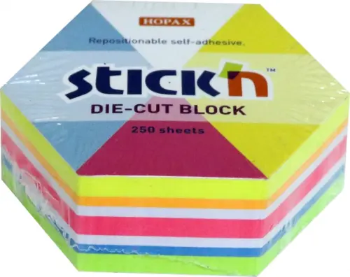 Блок для записей самоклеящийся "Гексагон", неоновые цвета, 61x70 мм, 250 листов