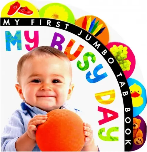 Книжка-картонка с цветными иллюстрациями “My First Jumbo Tab Book: My Busy Day” станет отличным подарком для детей.