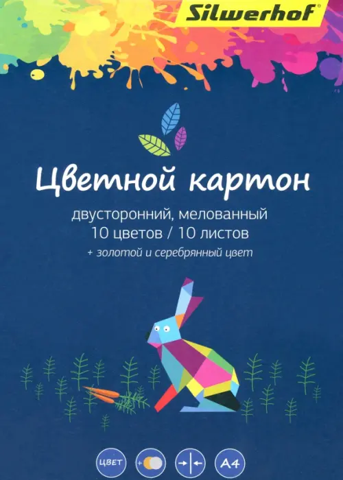 Картон цветной двусторонний, мелованный "Silwerhof. Цветландия", 10 листов, 10 цветов