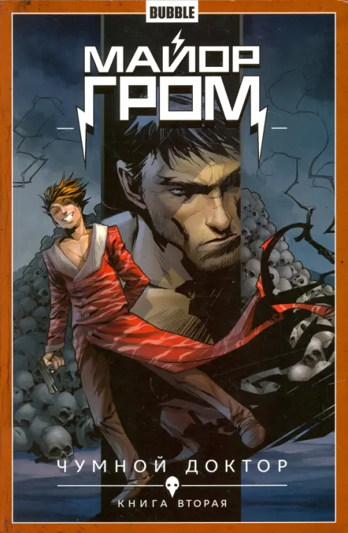 ИГОРЬ ГРОМ вычислил маньяка, скрывающегося под маской Чумного Доктора! Им оказался самый популярный человек в России - компьютерный гений и основатель социальной сети "Вместе" Сергей Разумовский. Охота на злодея переходит на новый этап: Чумной Доктор сбегает oт правосудия, и теперь майору Грому необходимо во что бы то ни стало отыскать Разумовского, пока тот не возглавил новое революционное движение и не поставил на колени всю страну. Второй том содержит выпуски комикса "Майор Гром" №7-10 (истории "Чумной Доктор" (части 6-8), "Блогофобия", "Сувенир", "Метаморфоза"), а также уникальные дополнительные материалы: скетчи, концепты, эскизы персонажей и комментарии создателей комикса.