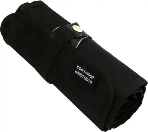 Текстильный пенал для роллеров и цветных карандашей выполнен из практичного износоустойчивого водонепроницаемого материала черного цвета.