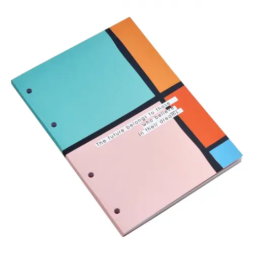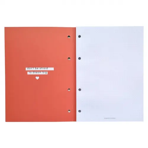 Блокнот подходит для тетради на кольцах (с отверстиями под кольцевой механизм).