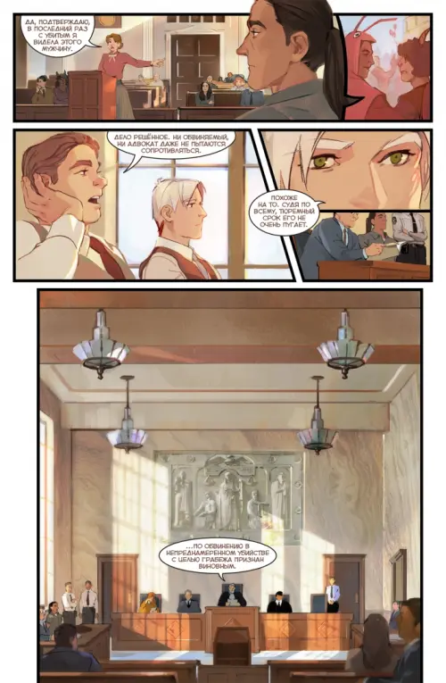 Хладнокровного убийцу ждёт час расплаты - Элес Эйр позаботилась об этом. Но пока справедливость торжествует, Элес, Коди и Суэ всё ещё настороже: непохоже, чтобы всё было так просто, как казалось в зале суда. Ребята ощущают подводные течения чьих-то интриг и скрытые мотивы, которые они пока не в силах понять. Между тем, результаты работы Дэма и Киу на тернистом пути познания граней науки и магии предельно красноречивы: ничего не работает и ничего не получается. Казалось бы, это тупик, но братьям некуда отступать. Издательство BUBBLE представляет продолжение авторского комикса Юлии Журавлёвой и Екатерины Морозовой "Пиджаки и Револьверы" - истории о жизни и проблемах разношёрстной банды идиотов в обманчиво мирном прибрежном городке. Держитесь крепче, вас ждут безумные эксперименты, магические фокусы, неожиданные секреты и продолжение захватывающего расследования, которое никого не сможет оставить равнодушным!