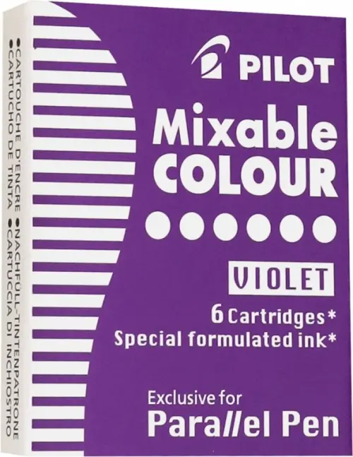 Картриджи с тушью для каллиграфии. Уникальная формула чернил разработана специально для использования в ручках Pilot Parallel Pen. Для получения других цветов или создания градиентов нужно ненадолго приложить перья двух Parallel Pen, заправленных разными цветами чернил друг к другу. Данные картриджи не рекомендованы к использованию в обычных перьевых ручках.