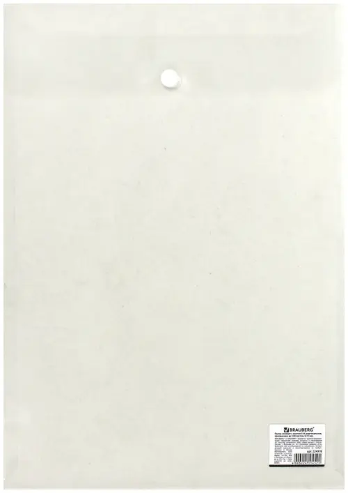 Папка-конверт с кнопкой "Brauberg", А4, цвет прозрачный