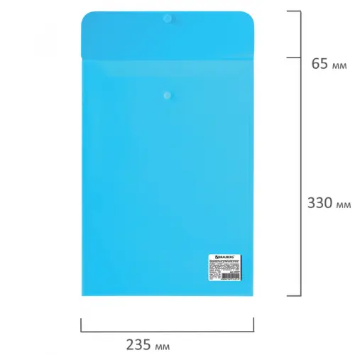 Папка-конверт с кнопкой "Brauberg", А4, цвет синий