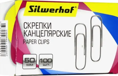 Скрепки канцелярские "Silwerhof", оцинкованные, 50 мм, 100 штук, арт. 491037