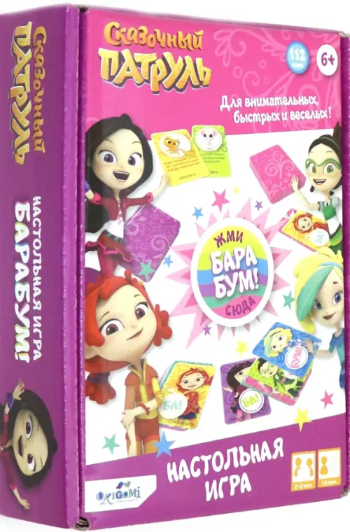 Игра выполнена в дизайне популярной детской лицензии "Сказочный патруль", лауреата премии "Мультимир-2019" в номинации "Лучший российский анимационный сериал. Выбор зрителей". Тот же любимый "БаРаБум", только еще больше карт, а значит больше партий и веселья!