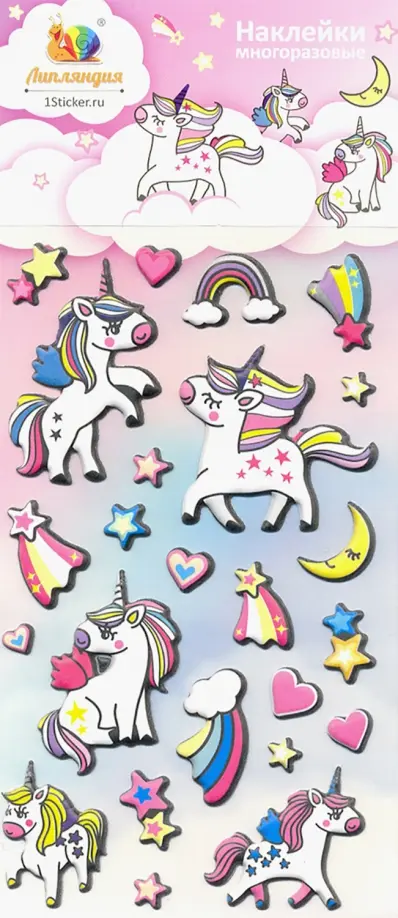 Наклейки многоразовые. Единороги 1