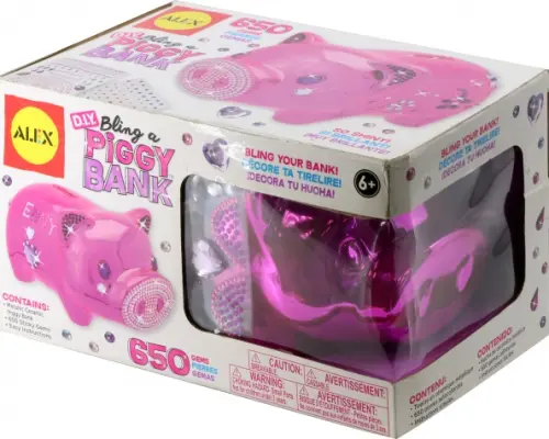 Самая гламурная свинка-копилка! Керамическая свинка-копилка покрыта ярко-розовой сверкающей металлизированной краской. Добавь блеска, украсив ее стразами из набора.