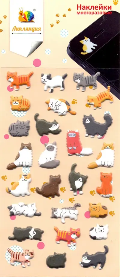 Наклейки многоразовые, сохраняют клеящие свойства даже после многократного использования.