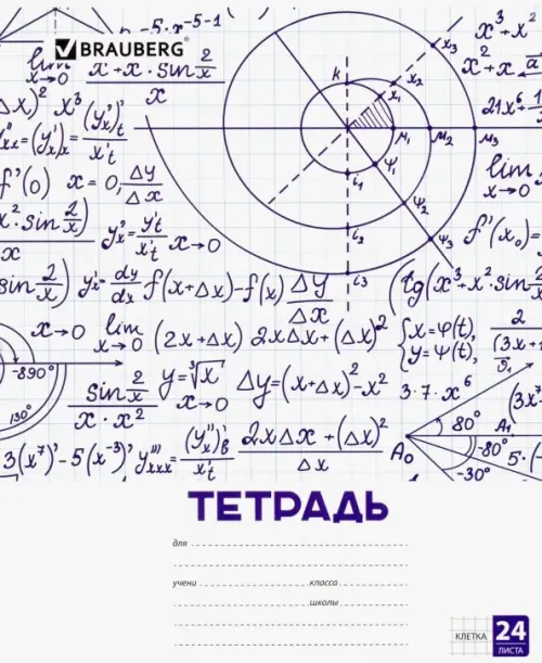 Тетрадь школьная "Чертежи и формулы", А5, 24 листа, клетка, в ассортименте