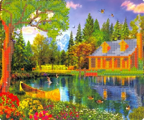 Алмазная мозаика "Дом у реки", 21х25 см