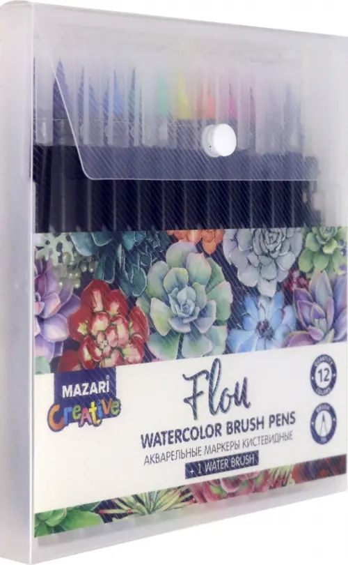 Маркеры 12 цветов, акварельные кистевидные FLOU