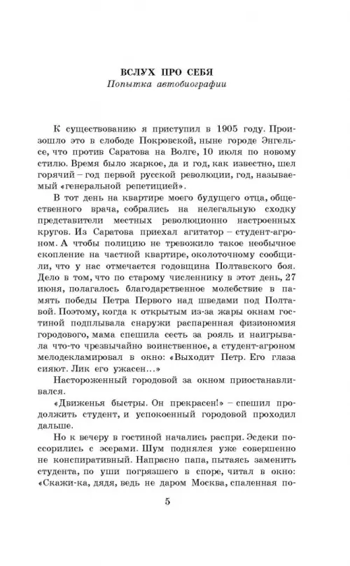 Автобиографическая повесть "Кондуит и Швамбрания" (1928) рассказывает о жизни гимназистов в дореволюционной России. Главные герои повести - Лёлик и Оська - придумывают воображаемую страну Швамбранию, которая воплощает все детские фантазии, навеянные книгами об отважных мореходах, исследователях, искателях приключений.