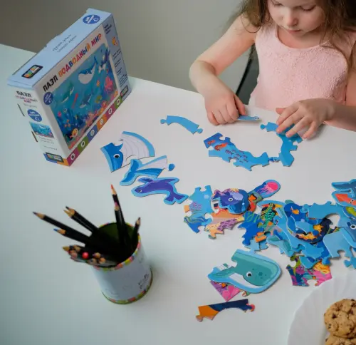 Пазл "Подводный мир" познакомит Вашего ребёнка с обитателями морей и океанов, их флорой и фауной, поможет развитию мелкой моторики и усидчивости.