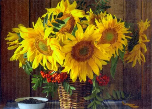 Сюжет картины "Подсолнухи" понравится всем любителям осенних натюрмортов!
