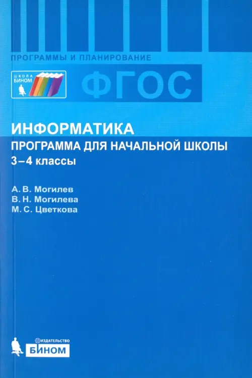 Издание содержит программу по информатике, ориентированную на использование линии учебников "Информатика" для 3-4 классов авторов: А. В. Могилева, В. Н. Могилевой, М. С. Цветковой, приложения: таблицы соответствия требованиям ФГОС, таблицы УУД (ФГОС), инструкцию по установке программы "Мир информатики". Предназначено для использования при подготовке образовательной программы образовательного учреждения для начальной ступени общего образования в соответствии с Федеральным государственным образовательным стандартом (ФГОС). Для учителей информатики, методистов и администрации образовательных учреждений, а также обучающихся по направлению "Педагогическое образование".