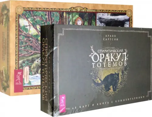 В комплект входят: СПИРИТИЧЕСКИЙ ОРАКУЛ ТОТЕМОВ (48 КАРТ) Перед вами уникальная колода, разработанная и нарисованная викканским магом и тарологом Арабо Саргсяном. В ней он впервые объединил фауну и спиритизм, паранормальные явления и дикую природу. Герои этой колоды - обитатели Таинственного леса, которые готовы поделиться с вами своими знаниями и мудростью. Вы сможете провести спиритический сеанс, создать духа-помощника, установить связь с тотемным животным, заглянуть в будущее, толковать сновидения, проводить медитации и обряды. С помощью этого набора каждый может стать медиумом, обратиться к тонкому миру и получить ответы на свои вопросы. "В этих картах я собрал все паранормальные явления, связанные со спиритизмом и потусторонним миром. Цель колоды - показать, что смерть - это не конец, что мы - это не только тело, что в круговороте сансары конец является также и началом. В "Оракул Теней" я вложил свое сердце и всю свою любовь - а в этих картах живет моя душа!" (Арабо Саргсян). В набор входит 48 карт и книга с комментариями. Колода построена по принципу спиритической доски Оуйя, изобретенной в XIX веке американцем Элайджей Бондом для связи с потусторонним миром. Все идеи карт взяты из реальных фотографий и отражают некие паранормальные явления, представленные в виде зверей и птиц. К каждой карте приводится подробное описание в прямом и перевернутом положениях, а также медитации, ритуалы и оригинальный саундтрек, написанный пианистом Арегом Мирзояном. В книге вы найдете подробное руководство по работе с колодой и описание 17 раскладов. Две карты в наборе пустые - их вы разработаете сами. Вы сможете вписывать в книгу дополнительные толкования, рисовать на картах, ставить на них печати и проводить ритуалы. Это интерактивная колода, и именно вы будете ее соавтором. ГОЛОСА ДЕРЕВЬЕВ. КЕЛЬТСКИЙ ОРАКУЛ (25 КАРТ) Перед вами уникальная, великолепно иллюстрированная колода, созданная по системе древесного огама - алфавита древних кельтов, который применяли для предсказаний и в магических целях. В далекие времена кельты верили, что в каждом дереве живет волшебный дух, с которым можно общаться благодаря магии. Древний народ изучал специфические духовные вибрации деревьев и их магические свойства. Эти знания дошли до нас в легендах и сказаниях. Сегодня вы тоже можете обратиться к деревьям, духам, живущим в них, - за мудрым советом, духовной поддержкой и целительной энергией. Подарите себе возможность овладеть богатейшей предсказательной практикой древних кельтов, развить интуицию и образное мышление. Откройте свое сердце, и вы услышите голоса деревьев. В данный комплект входит колода из 25 карт и книга с комментариями, в которой вы найдете: - интересный рассказ об истории кельтов и их связи с волшебным миром деревьев; - объяснение принципа действия кельтского оракула; - рекомендации по работе с картами - освящение карт, чтение посланий деревьев, изготовление атрибутов для гадания; - подробное описание и толкование каждой карты в прямом и перевернутом положениях; - ритуалы магии деревьев - для предсказаний и медитаций; - три карточных расклада для прояснения вопросов любой сложности.