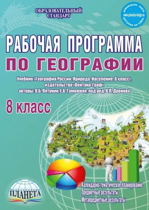 Данная рабочая программа по географии предназначена для 8-го класса основной средней школы, разработана и составлена с учетом требований Федерального государственного образовательного стандарта второго поколения для учебника "География России. Природа. Население. 8 класс" под редакцией В. П. Дронова (издательство "Вентана-Граф"). Структура рабочей программы включает в себя: общую характеристику предмета, пояснительную записку с указанием целей и задач изучения предмета "География" в 8 классе, планируемые личностные, метапредметные и предметные результаты освоения обучающимися программы, краткую характеристику содержания курса, критерии оценки учебной деятельности и развернутое календарно-тематическое планирование. Книга предназначена для учителей географии, заместителей директоров по учебно-воспитательной работе, методистов, студентов педагогических колледжей и вузов, магистрантов, слушателей курсов повышения квалификации.