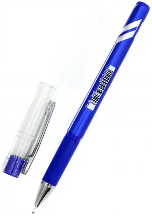 Ручка шариковая с колпачком. Толщина пишущего узла: 0.7 мм. С резиновой манжетой. Цвет корпуса: синий металлик. Цвет чернил: синий. Сделано в Китае.