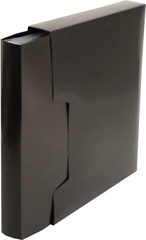 Папка в коробе. 100 прозрачных вкладышей. Формат: A4. Материал: пластик 0.7 мм. Цвет: черный. Сделано в России.