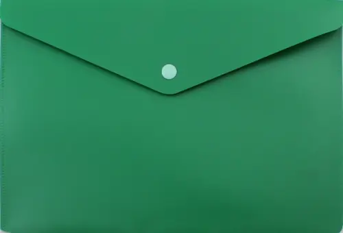 Конверт с кнопкой. Однотонный. Толщина: 0,18 мм. Формат: А5. Цвет: зеленый. Сделано в России.