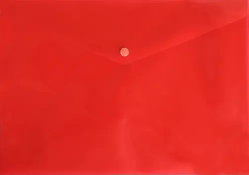 Папка-конверт на кнопке горизонтальная. Формат: А4. Материал: пластик 0.18 мм. Цвет: красный. Сделано в России.