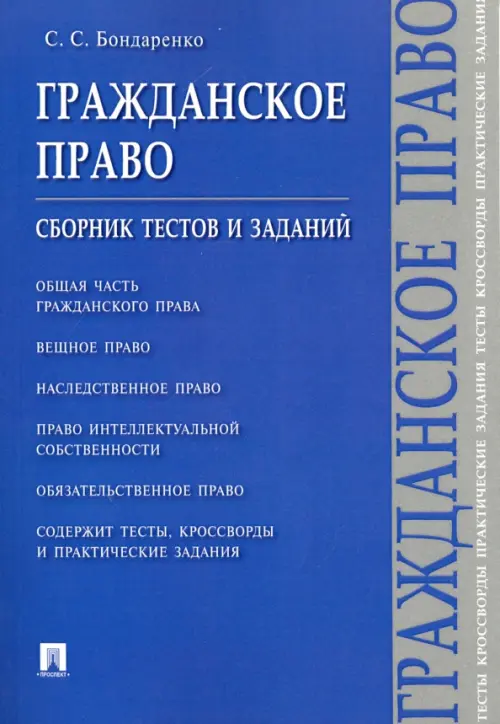 Настоящее издание содержит более 50 различных заданий, среди которых тесты, кроссворды, практические задания, связанные с анализом юридических документов, и др. В издании охвачены все разделы курса гражданского права. При составлении заданий использовались нормативные правовые акты по состоянию на ноябрь 2015 г. Имена граждан, наименования организаций, упоминаемые в практических заданиях, являются вымышленными. Издание рассчитано на студентов, аспирантов, преподавателей юридических вузов и факультетов, может быть полезным для тех, кто самостоятельно изучает гражданское право или желает проверить свои знания.