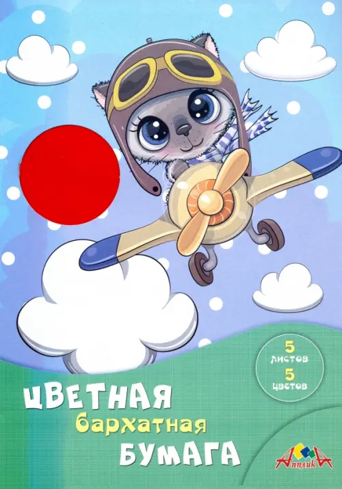 Бумага цветная бархатная. Смелый пилот, А4, 5 листов, 5 цветов