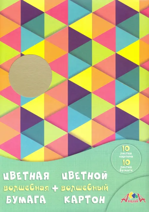 В наборе цвета картон: красный, синий, зеленый, желтый, оранжевый, фиолетовый, черный, белый, золотой серебряный; бумага: синий, желтый, красный, черный, розовый, оранжевый, коричневый, зеленый, золотой, серебряный.