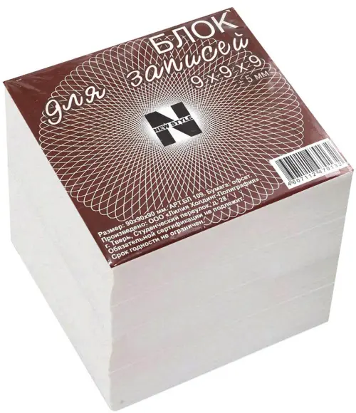 Блок для записей. Размер: 9х9х9 см (+/-5 мм) Бумага: офсет. Произведено в России.