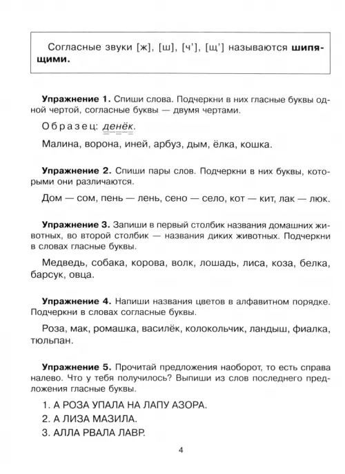 В учебном пособии подобраны упражнения на все правила русского языка для учащихся начальной школы. Представлены все уровни сложности заданий и ответы для самопроверки. Книга адресована ученикам 1-4 классов, а также их педагогам и родителям для занятий с детьми в школе и дома.