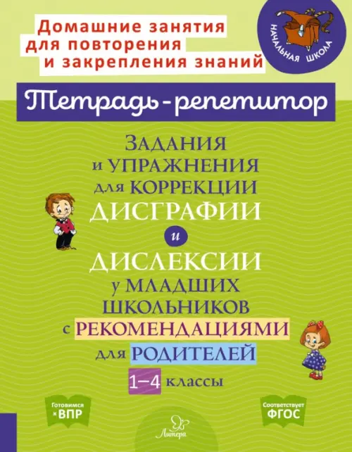 В книге собраны задания и упражнения для коррекции дисграфии и дислексии у младших школьников. Она адресована заботливым родителям и логопедам, которые отрабатывают важные речевые умения и навыки у детей 1-4 классов. Упражнения в рабочей тетради подобраны интересные и разнообразные. Они будут эффективными, если индивидуальная работа с ребёнком будет систематической. Для родителей даны рекомендации, следуя которым, они сумеют грамотно организовать домашние занятия. На многие задания приведены ответы.
