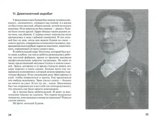 В книге представлена беллетризованная биография знаменитого американского иллюзиониста Гарри Гудини. Личность этого человека окружена многочисленными легендами, что для профессионального фокусника, пожалуй, лучшая из возможных наград. В этом же суть профессии – превращать обычное в необыкновенное, очевидное в загадочное, заурядное в магическое. При жизни с популярностью Гудини не могли сравниться ни миллионеры, ни политики, ни деятели культуры. Он был первой настоящей звездой в истории Америки. И первым фокусником, получившим общемировую известность. Жизнь Гудини это история бесконечного преодоления - себя, обстоятельств, обывательской инерции. Знаменитый мастер трюков своими блистательными представлениями показывал миру, что человеческие возможности безграничны. И что не стоит искать волшебства там, где его нет и быть не может. При этом многие современники воспринимали Гудини именно как волшебника… Биографические рассказы о Гарри Гудини иллюстрированы редкими фотографиями, сделанными в разные периоды его жизни.