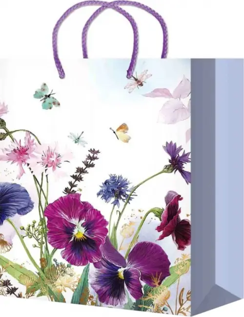 Пакет подарочный, бумажный. Матовая ламинация. Текстильные ручки в виде шнура. Размер: 110х137х60 мм.