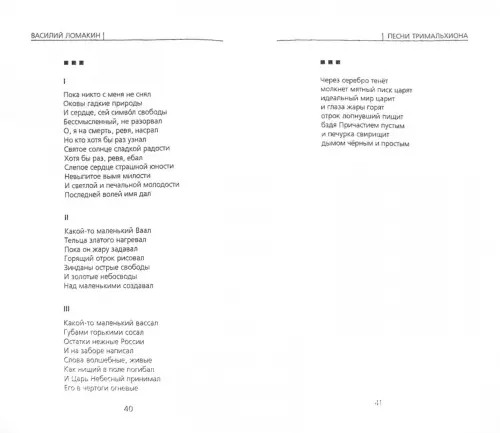 Василий Ломакин - редкий случай ярко выраженного автора-одиночки. Родившись в Москве, он с 1991 года живет в США, работает в далекой от литературы области - и только в августе 2002 года его стихи впервые были представлены читателям в Интернет-журнале "TextOnly", а затем появились и в новом выпуске "Митиного журнала". Эти две публикации привели 45-летнего дебютанта в шорт-лист Премии Андрея Белого за 2003 год. Уже ранние (конца 1980-х) стихи Ломакина, написанные до эмиграции, производят сильное впечатление постоянным обращением к теме своей страны и своего народа, увиденных словно уже из отдаления, но не из-за океана, а Бог весть откуда. Чем дальше, тем жестче и болезненней становится этот взгляд - дистанцированный, но не сторонний.