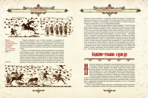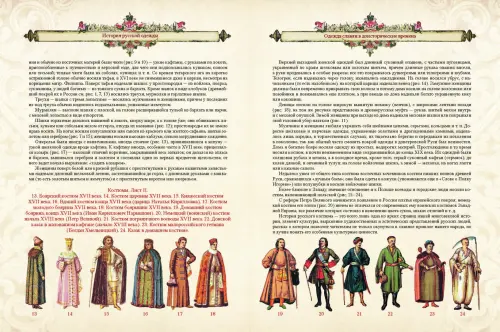 Эта книга проведет вас по самым ярким моментам истории русской одежды с древнейших времен до начала XX века - от курганов древних скифов до пышных дворцовых балов времен Николая II. Вы узнаете, как одевались в разные эпохи крестьяне и военные, дворяне и священнослужители, познакомитесь с историей самых разнообразных элементов одежды, украшений и военной формы, придворных платьев и мундиров. Знаете ли вы, какие элементы русского национального костюма произошли от одежд скифов? Правда ли, что княжеские шапки украшали слоновой костью, а воины древнеславянских племен носили серьги? Что рассказала об одежде древних славян колонна римского императора Траяна? Почему при Петре I попало под запрет традиционное русское платье, при Николае I - усы и борода, а при Александре I вновь вошел в моду кокошник? Тексты знаменитых русских историков XIX - начала XX века иллюстрированы произведениями классической живописи.