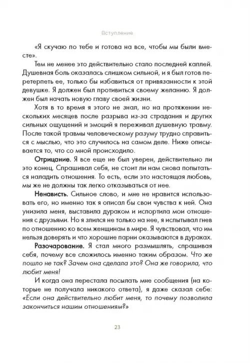 Книга оказалась очень полезной в процессе саморазвития. Автор предлагает практические упражнения для преодоления эмоциональных травм и достижения внутреннего покоя. После прочтения я почувствовала себя намного лучше. Рекомендую!